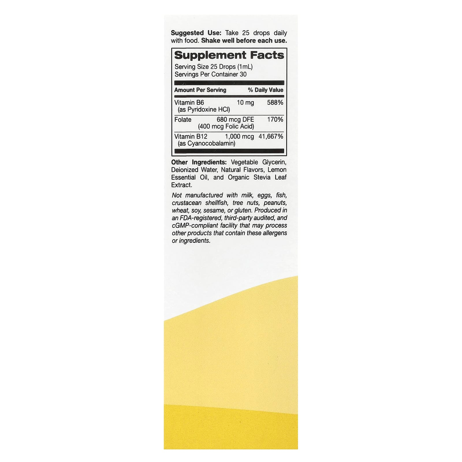 Vitamines B12 + B6 de Super Nutrition contient de la vitamine B6 sous forme de chlorhydrate de pyridoxine, de la vitamine B12 sous forme de cyanocobalamine et du folate sous une forme liquide pratique. Il vous suffit de consommer chaque jour ce liquide aromatisé naturellement, en suivant les instructions.